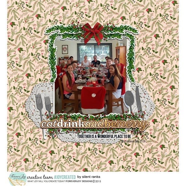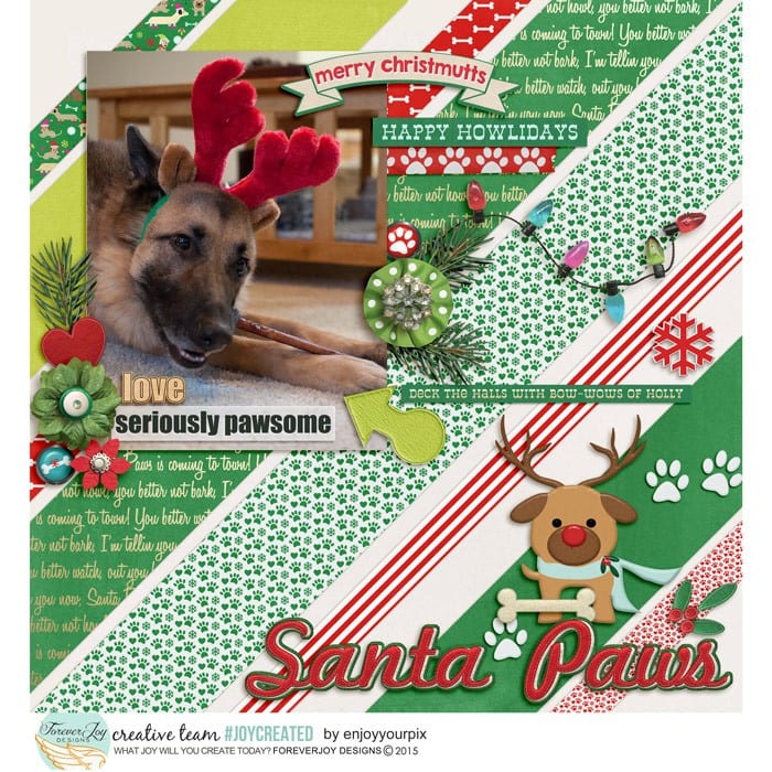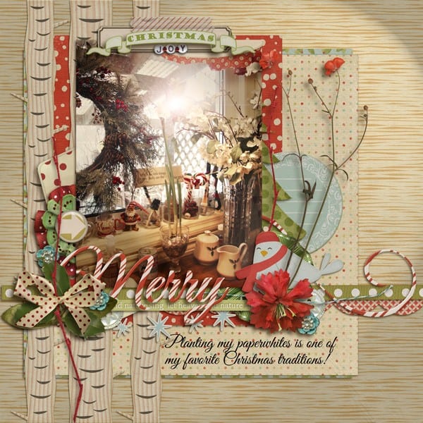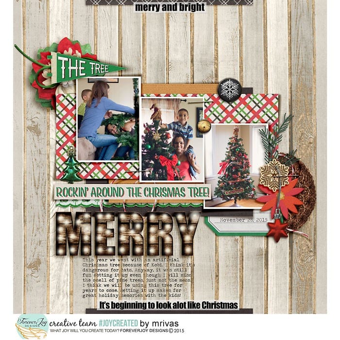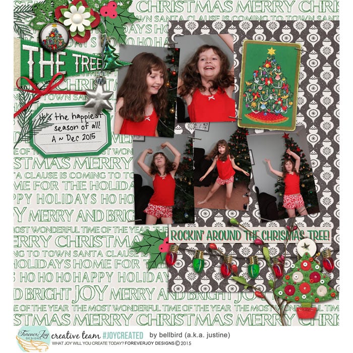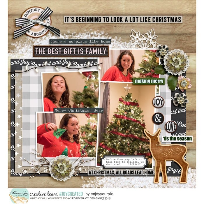 When I was looking back on some of my favorite layouts using ForeverJoy Christmas Kits, I realized this approach to moments is what made the pages so meaningful, not a strict timetable.  In fact, not many of the layouts even have a date on them, but somehow, you can feel the memories being made, the joy of it all- and that’s what makes them special.  Here’s a look at what I mean: