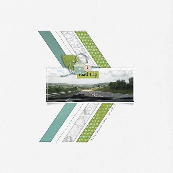 These layouts uses scenic shots, the car photo we all take and yes! a map- and truth told- those shots could’ve been pulled from the web- it’s the journaling and the map with the rout that really telly the story. And that’s a great tip- because sometimes you can tell a great story with supporting, or even stock photos as opposed to photos taken on the day of the event. It’s the way we pull it together and blend all the elements that make our stories art.